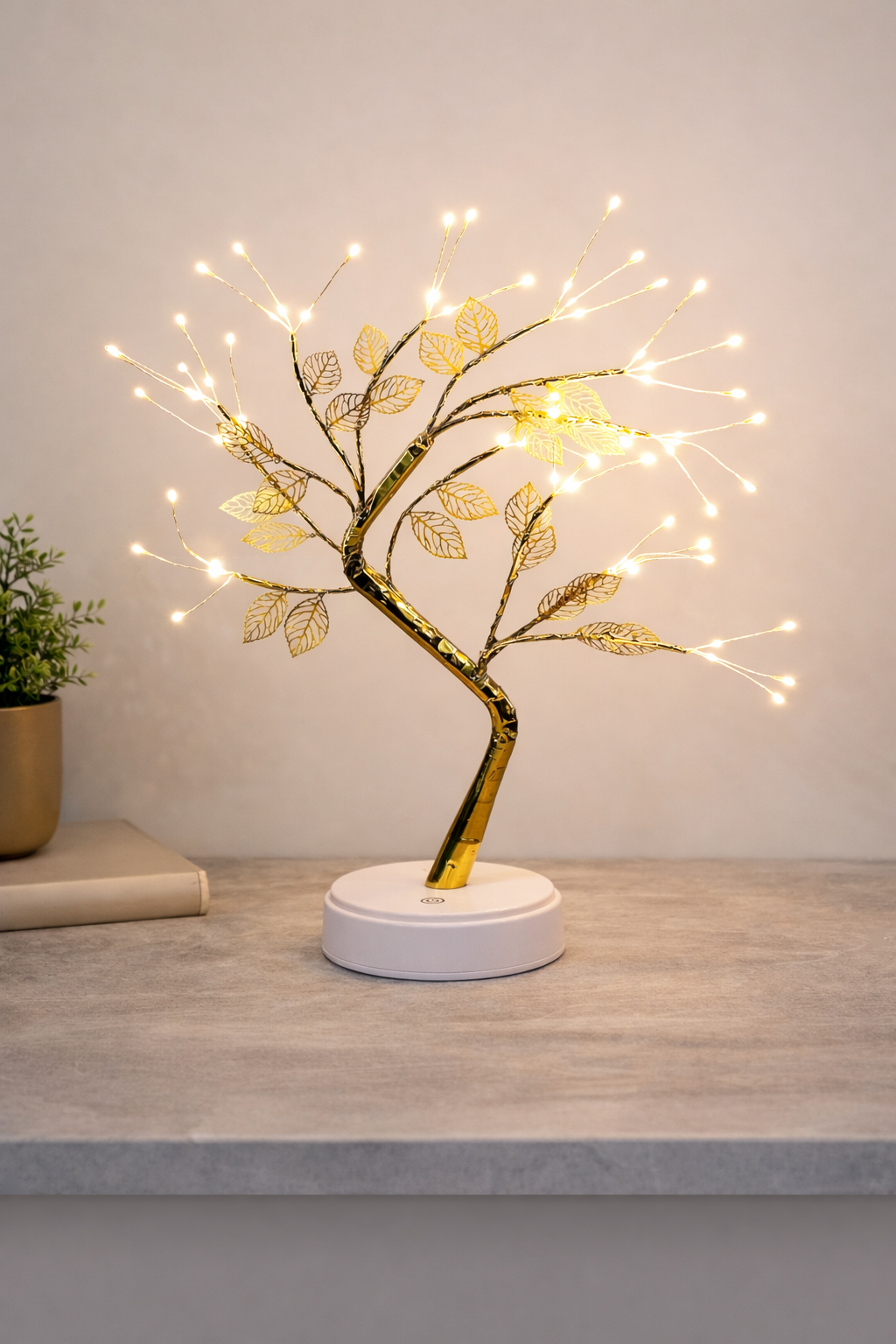 Each flexible branch is dotted with gentle LED lights and finished with elegant golden leaves, allowing you to shape the tree exactly how you want it. Whether it’s placed on a nightstand, desk, or shelf, GoldenGlow adds warmth without overpowering — perfect for winding down, reading, or setting a peaceful mood.